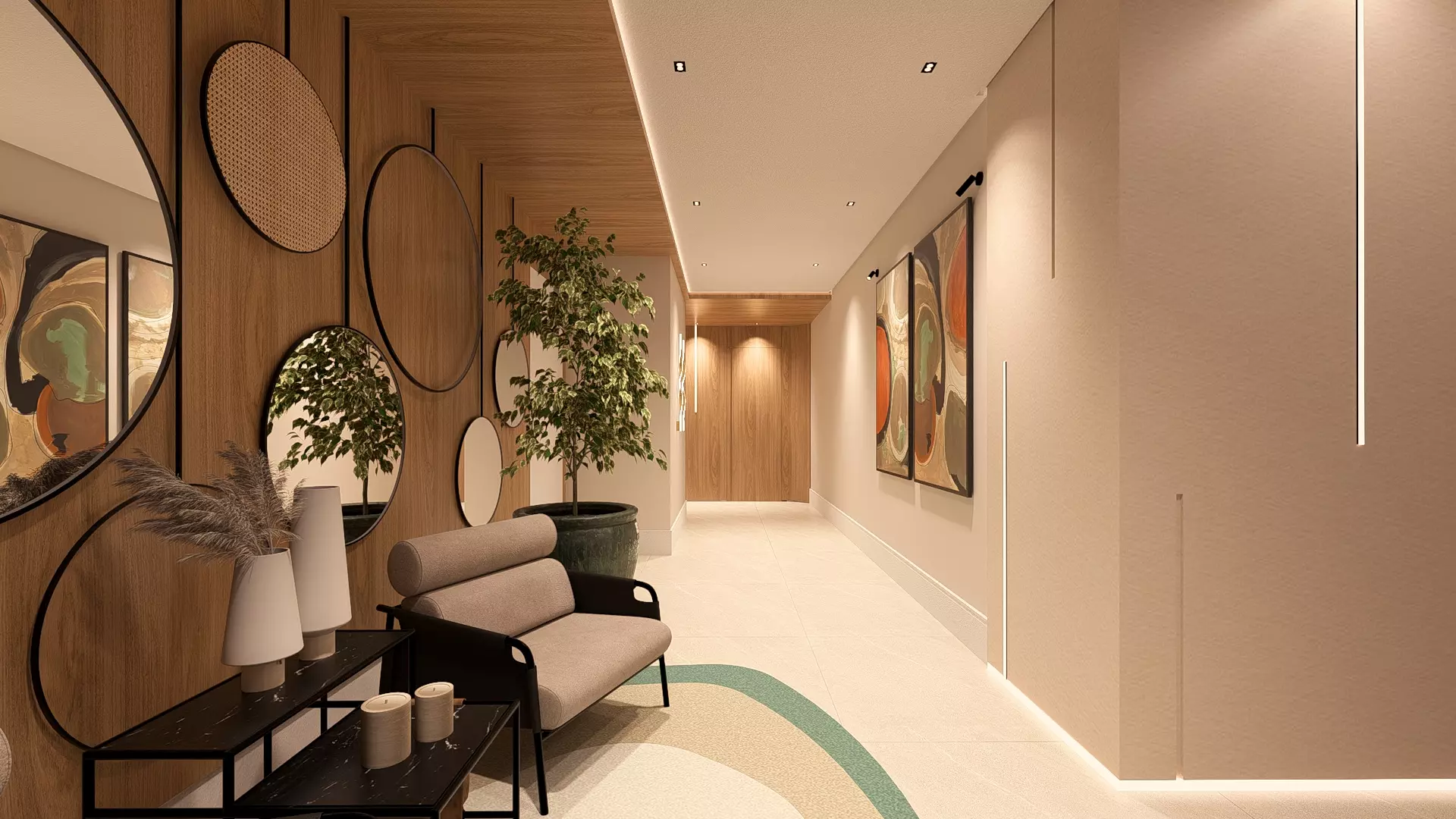 Entre os principais diferenciais, estão os espaços gourmet/kids, com mais de 200m² e hall social prontos e decorados, homebox individual no hall do apartamento, revestimento marmorizado e iluminação nas fachadas, assim como todas as garagens individuais.